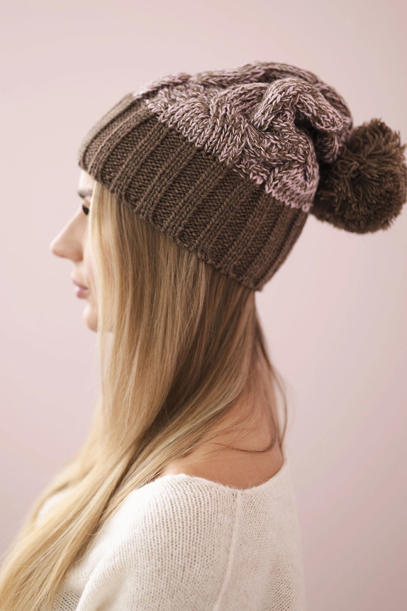 Czapka z polarem Paryż K213 brązowy+pudrowy róż