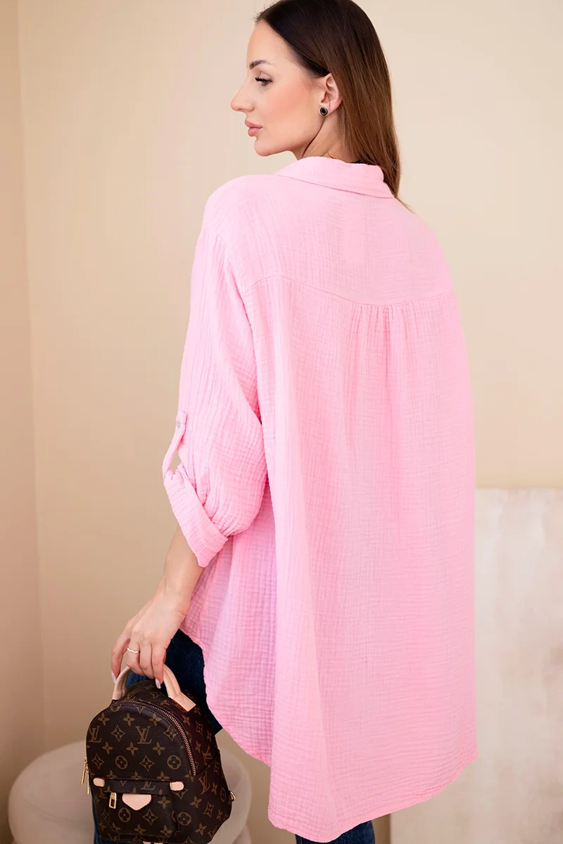 Koszula bawełniana muślinowa Plus Size jasno różowa
