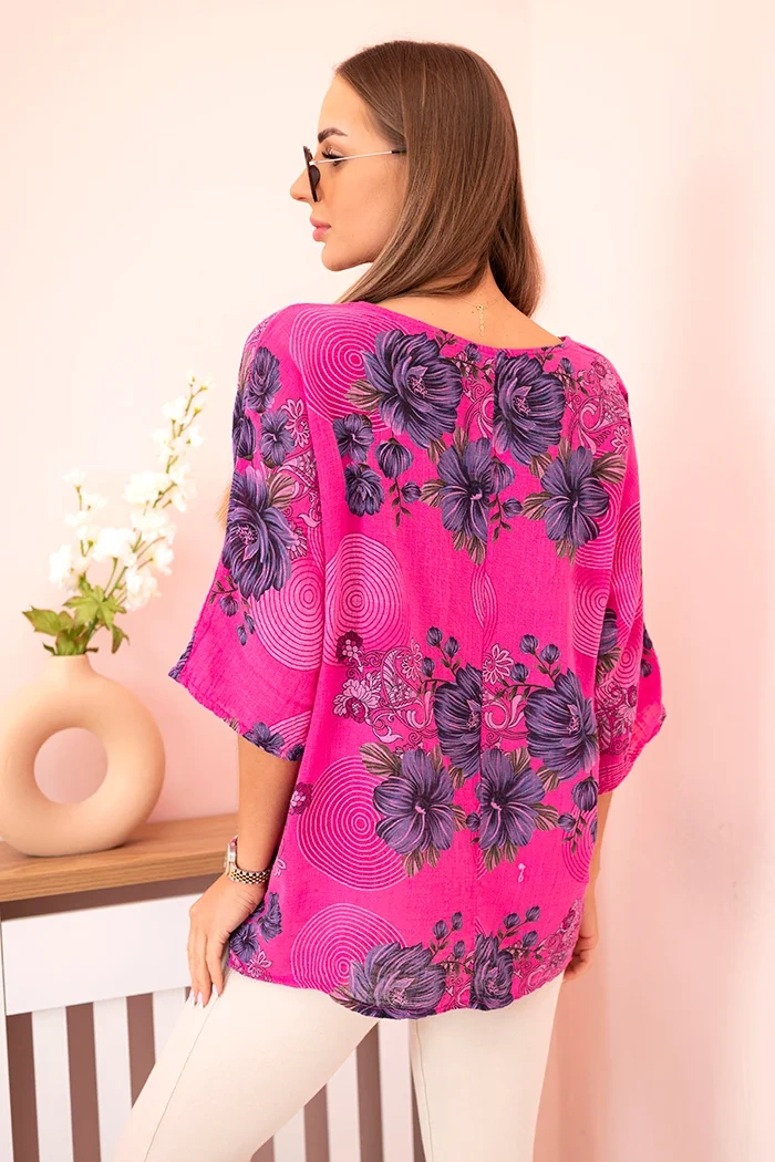 Ta bluzka damska to idealny wybór dla kobiet, które cenią sobie komfort i styl w codziennych stylizacjach. Wyróżnia się efektownym kwiatowym wzorem oraz intensywnym kolorem, który przyciąga uwagę i dodaje energii każdemu lookowi. Luźny krój zapewnia swobodę ruchów, a miękka, naturalna bawełna sprawia, że noszenie jej to czysta przyjemność – nawet w cieplejsze dni. Bluzka świetnie sprawdzi się zarówno na co dzień, do jeansów i sportowych butów, jak i w bardziej eleganckich zestawach z cygaretkami czy spódnicą. To doskonała propozycja na spacer, zakupy, spotkania z przyjaciółmi czy letni wyjazd. Rozmiar jest uniwersalny i będzie odpowiedni dla Pań w rozmiarze S, M lub L.