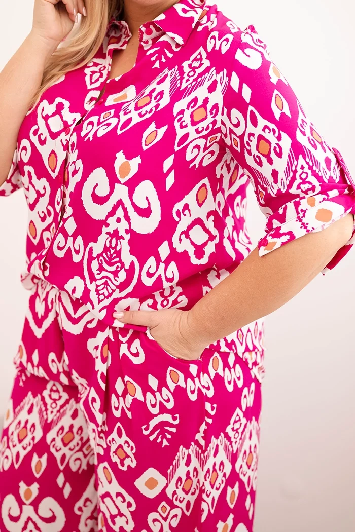 Komplet damski Plus Size wiskozowy z geometrycznym nadrukiem fuksja
