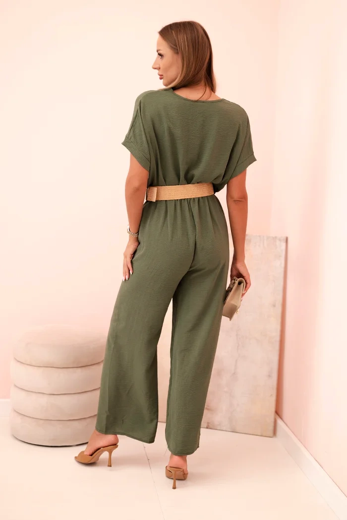 Przedstawiamy Państwu modny kombinezon z ozdobnym paskiem w talii. Kombinezon posiada niepowtarzalny krój. Kombinezon wykonany jest z wysokiej jakości materiału. Rozmiar jest uniwersalny i będzie pasował dla osób w rozmiarze S, M i L.