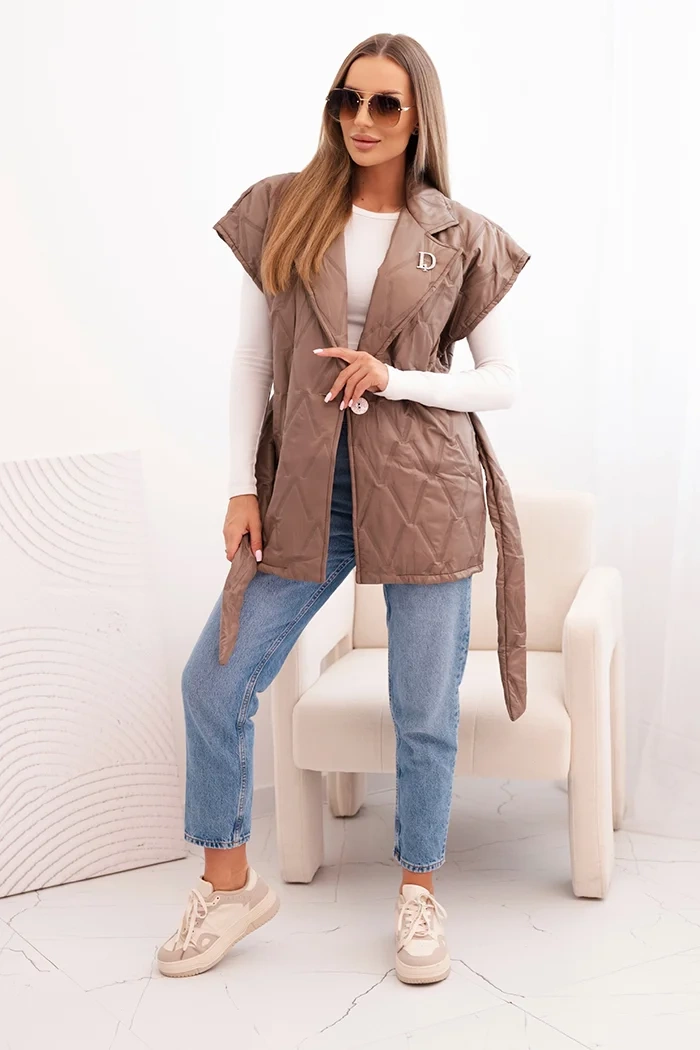 Kamizelka damska pikowana z paskiem i szerokim kołnierzem fango