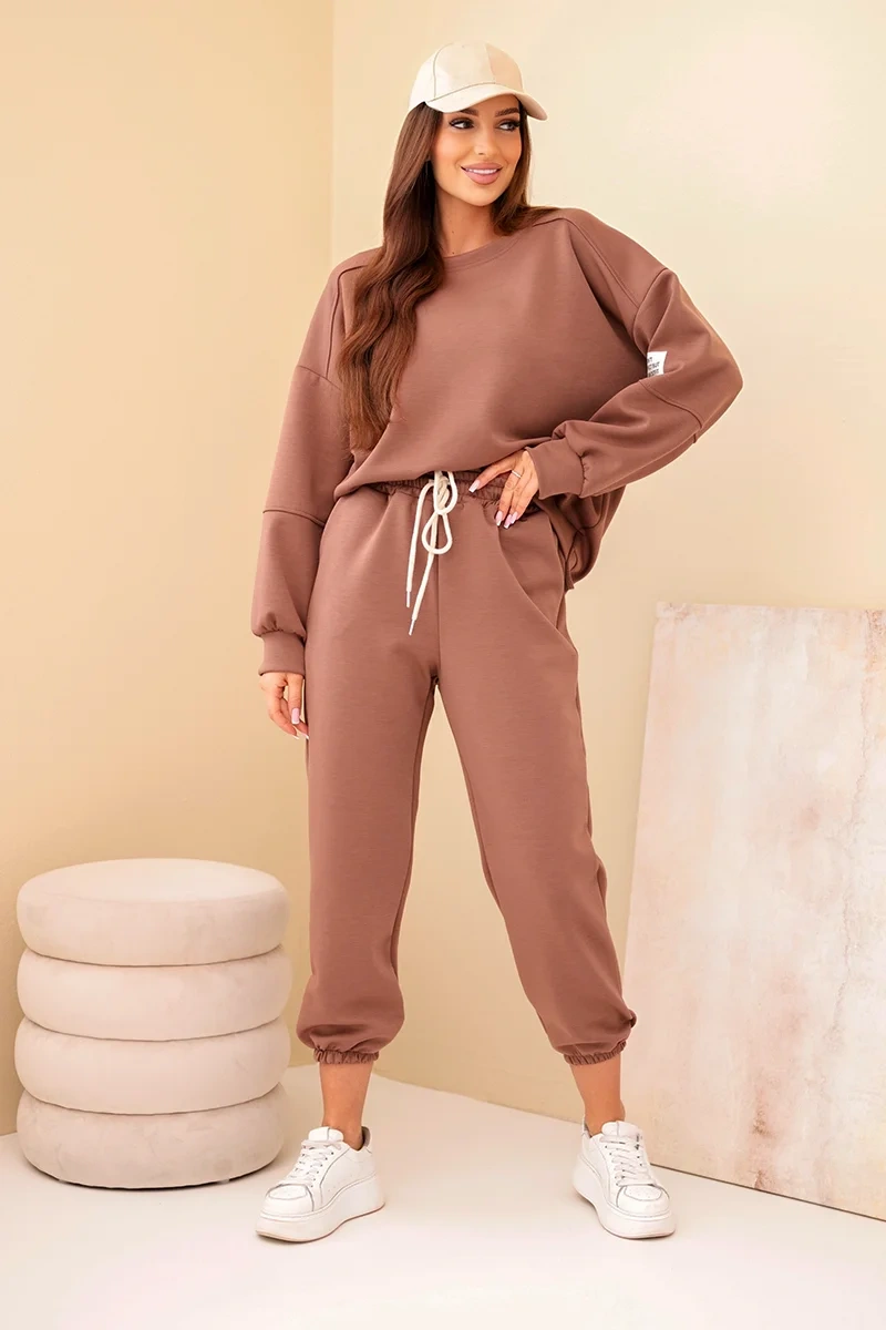 Komplet z wiskozy, składający się z bluzy i spodni, to idealny wybór dla osób ceniących wygodę i elegancję. Wykonany z miękkiej, oddychającej wiskozy, zapewnia komfort noszenia przez cały dzień, doskonale dopasowując się do sylwetki. Bluza ma luźny, swobodny krój, a spodnie charakteryzują się elastyczną talią, co gwarantuje wygodę i swobodę ruchów. Ten zestaw świetnie sprawdzi się zarówno na co dzień, jak i na bardziej casualowe wyjścia, łącząc w sobie stylowy wygląd i funkcjonalność. Rozmiar jest uniwersalny i pasuje dla kobiet noszących rozmiar S, M lub L.