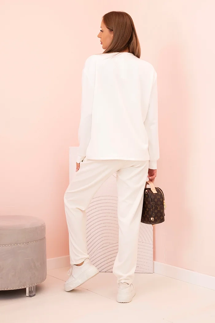 Komplet damska masełkowy bluza i spodnie z gumką ecru