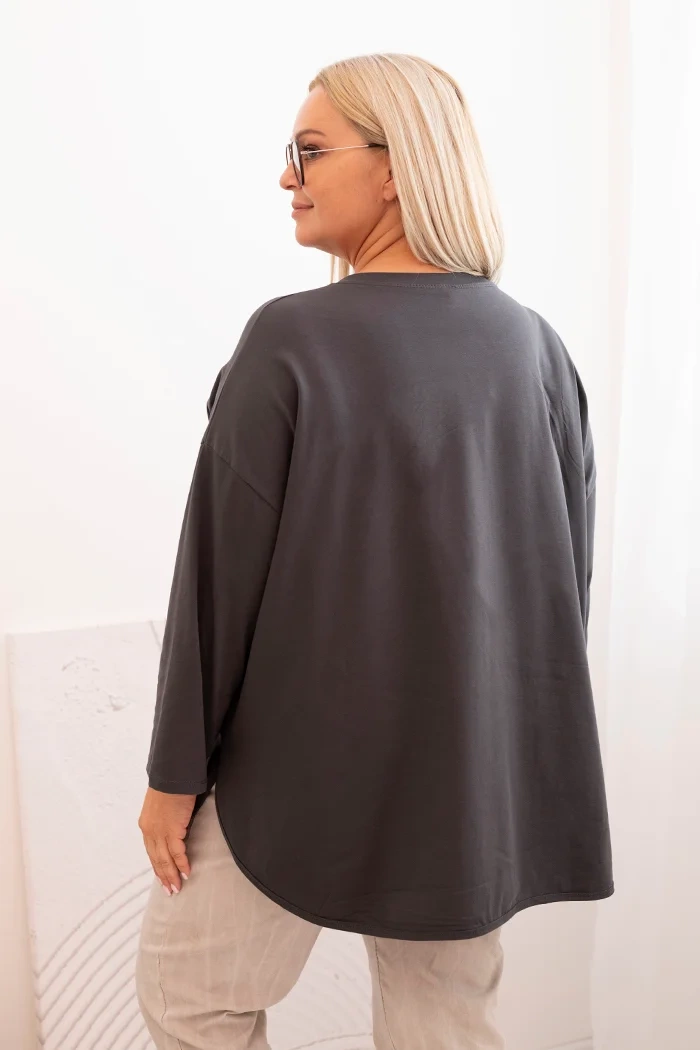 Bluzka damska Plus Size z bawełną z kieszenią i rękawem podwijanym grafitowa