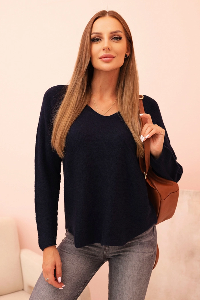 Sweter damska z wiskozą z dekoltem w serek granatowy