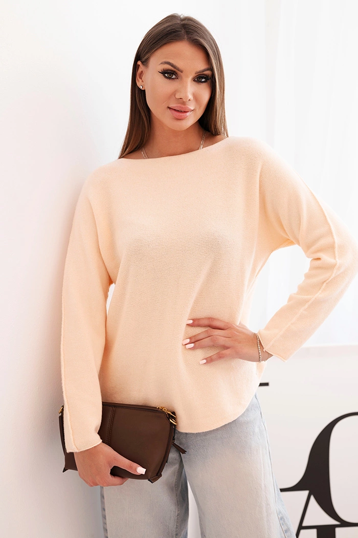 Sweterek damska z wiskozy z długim rękawem i okrągłym dekoltem morelowy