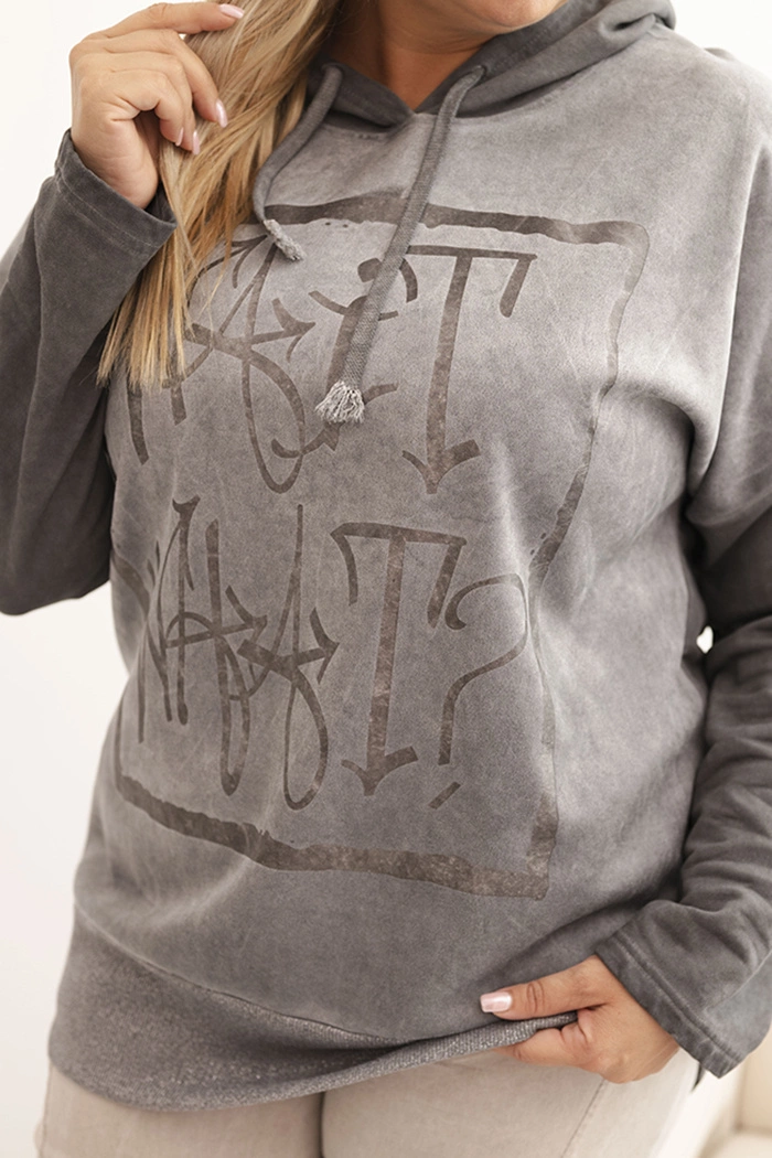 Ta stylowa bluza damska w rozmiarze Plus Size to doskonały wybór dla kobiet ceniących wygodę i oryginalny wygląd. Wykonana z miękkiej bawełny z dodatkiem poliestru, zapewnia komfort noszenia przez cały dzień. Dekatyzowany materiał z modnym nadrukiem oraz brokatowe wykończenie u dołu nadają jej unikalnego charakteru.
