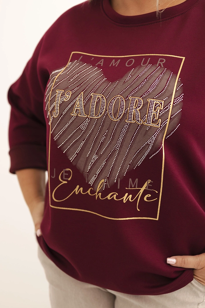 Bluza damska Plus Size masełkowa  z nadrukiem 3D śliwkowa