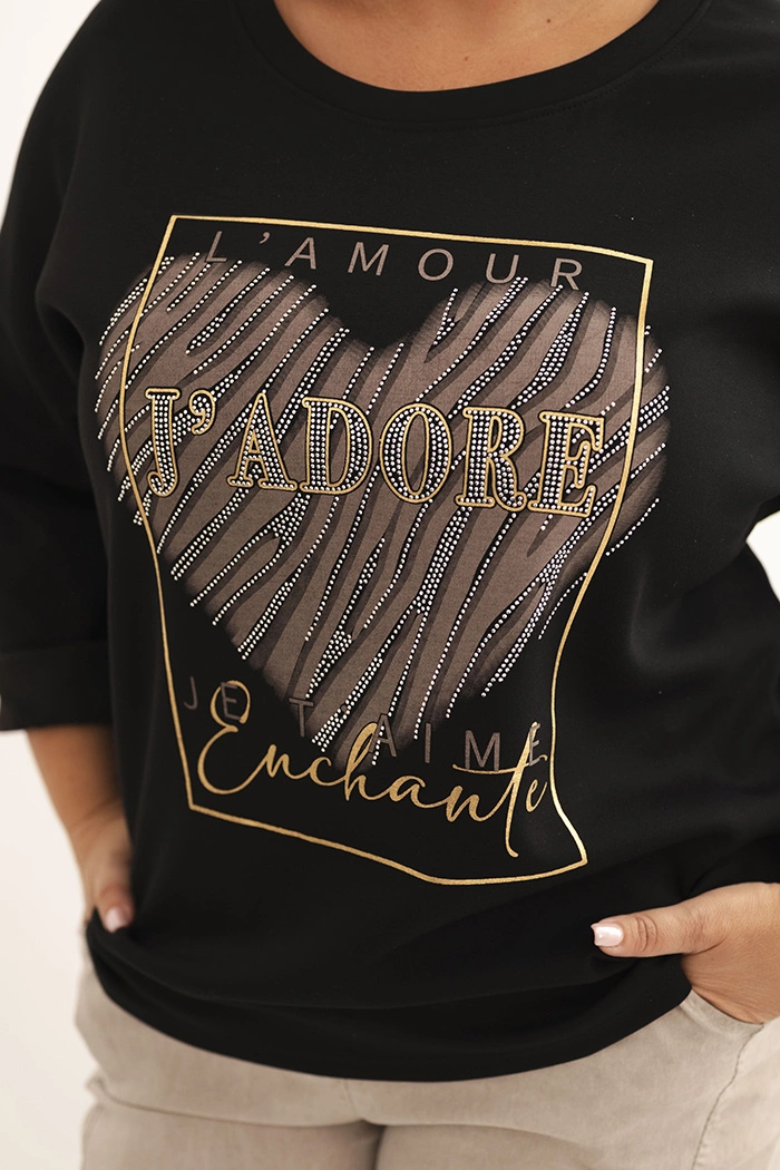 Bluza damska Plus Size masełkowa  z nadrukiem 3D czarna