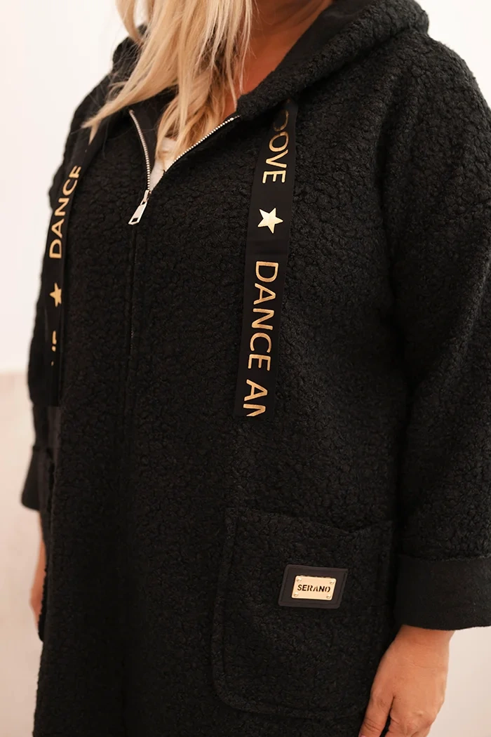 Płaszcz damski Plus Size ze sztucznego baranka z kapturem i kieszeniami czarny