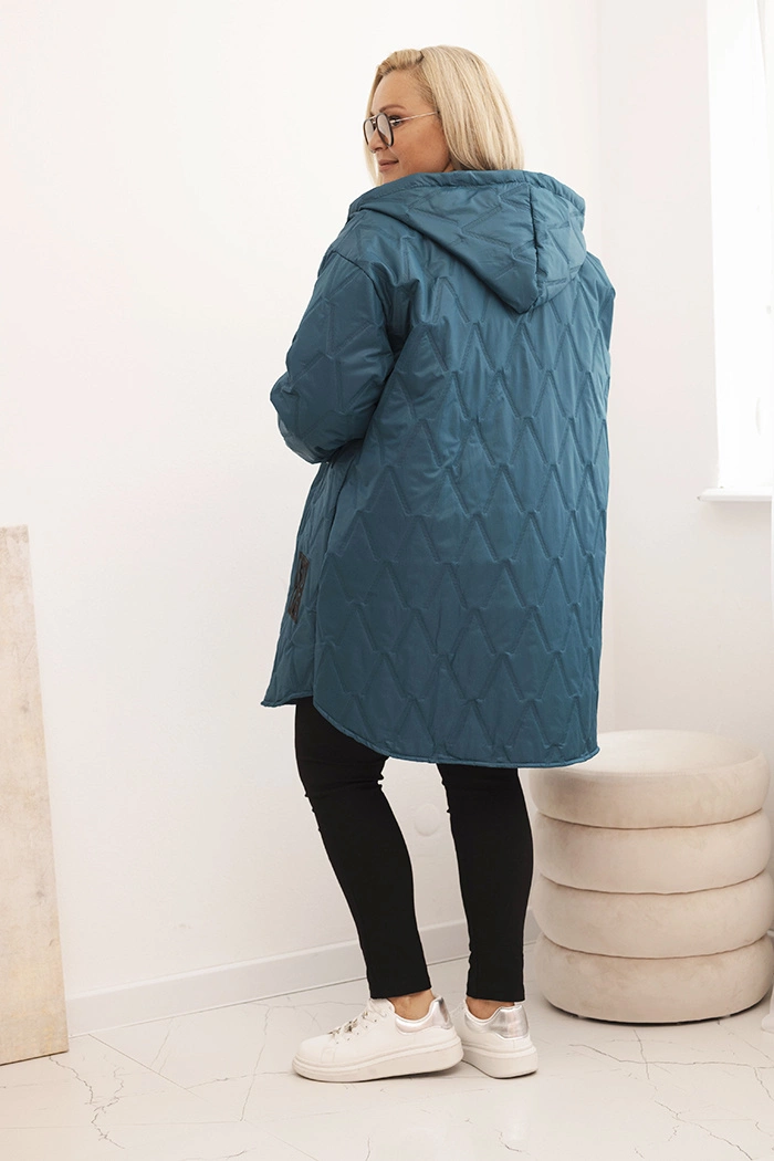 Kurtka damska Plus Size pikowana z kapturem i napisem HOPE morska