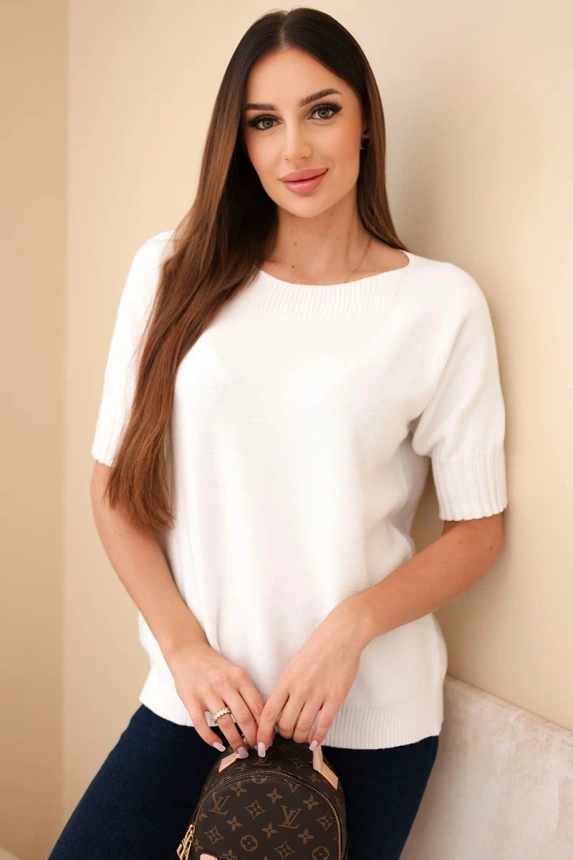 Sweter damski z wiskozy z krótkim rękawem ecru