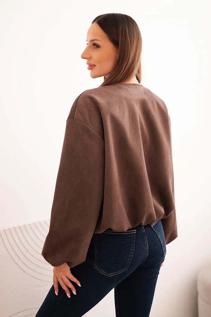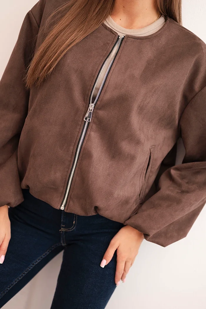 Kurtka damska z zamkiem i bufiastym rękawem brązowa