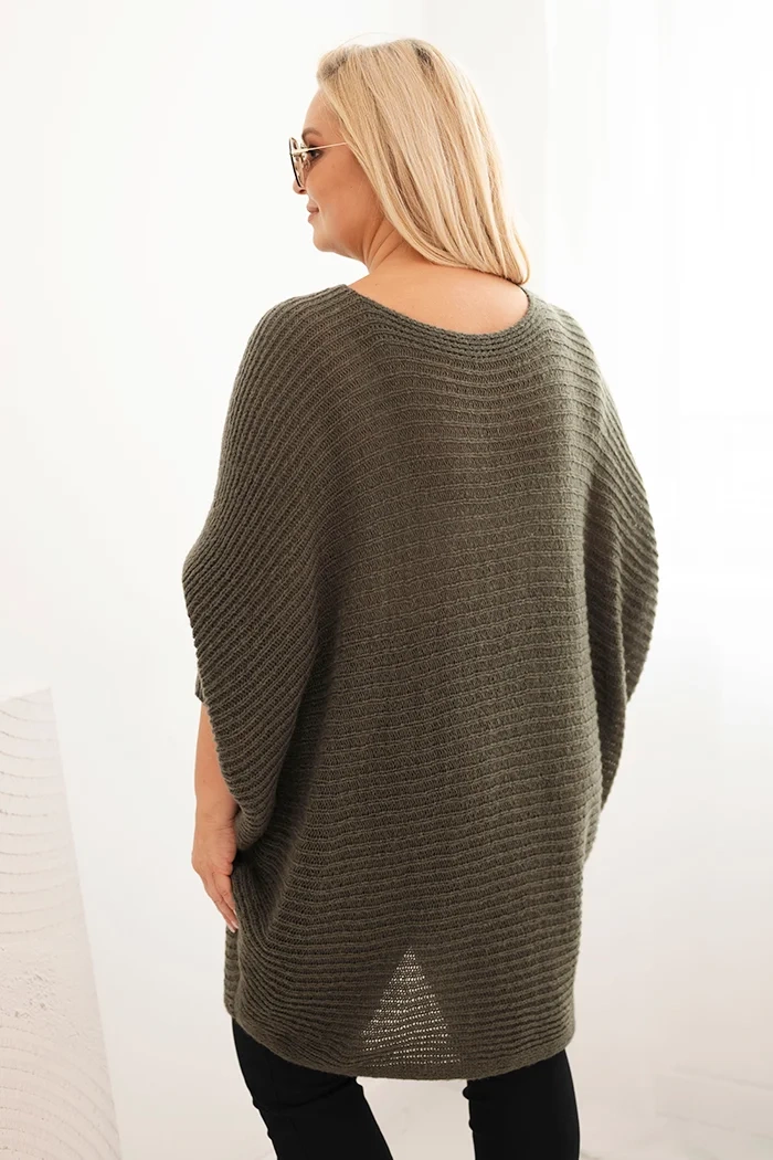 Stylowy sweter damski Plus Size z moherem w formie poncza to doskonała propozycja dla kobiet ceniących wygodę, ciepło i nowoczesny wygląd. Luźny, oversize’owy fason pięknie układa się na sylwetce, zapewniając komfort i swobodę ruchów. Długość zakrywająca biodra sprawia, że sweter idealnie pasuje zarówno do legginsów, jak i jeansów, tworząc modne i wygodne stylizacje na co dzień.
