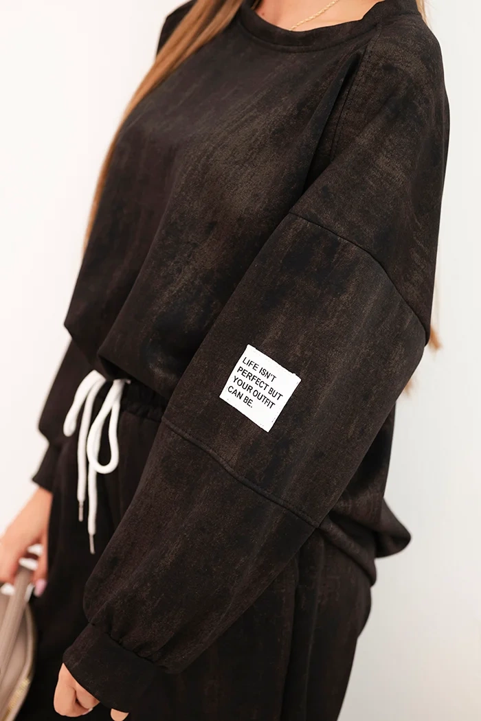Komplet dresowy damski oversize z wiskozy i z efektem sprania czarny