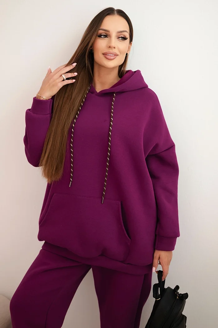 Komplet dresowy damski ocieplany z bawełny i z kapturem ciemno fioletowy