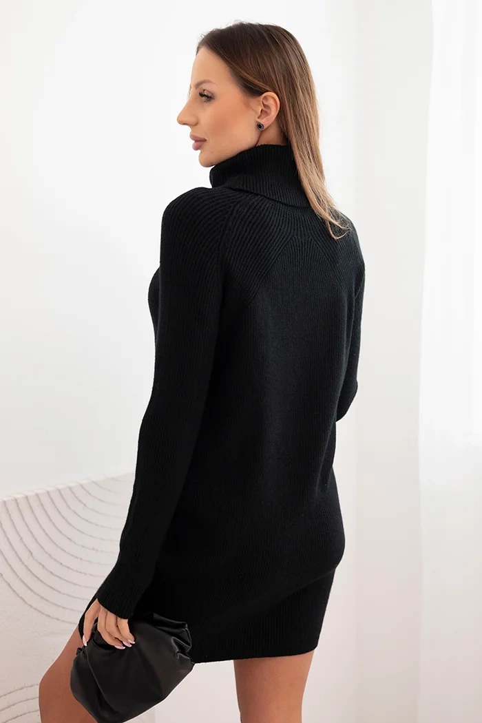 Sukienka damska z wiskozą dzianinowa z szerokim kołnierzem czarna