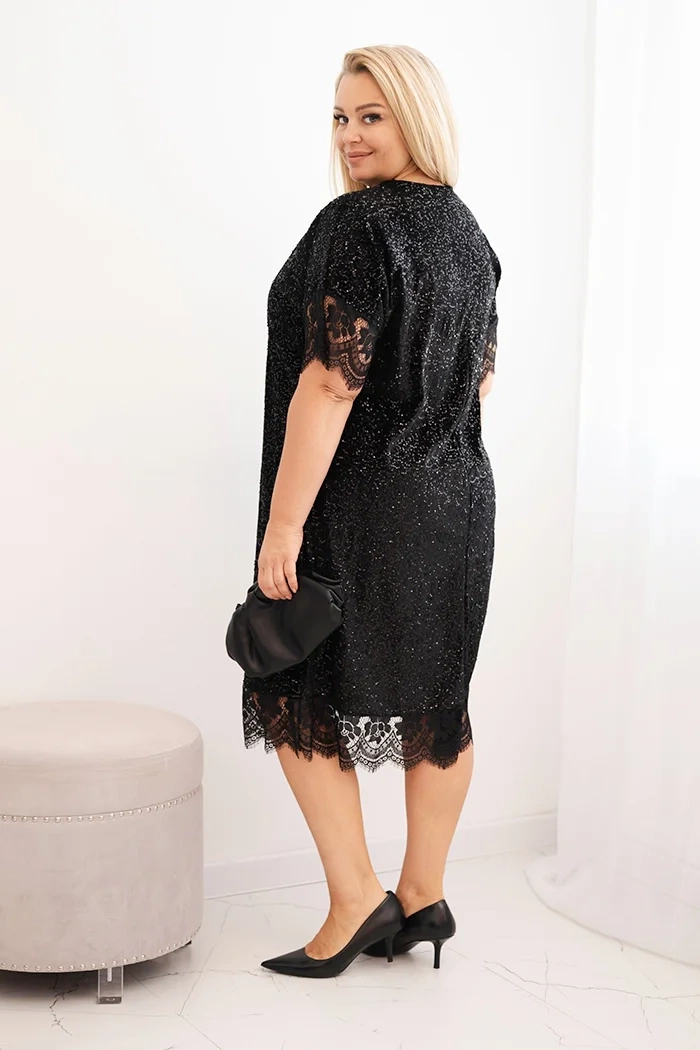 Sukienka damska Plus Size z cekinami i koronkowym wykończeniem czarna