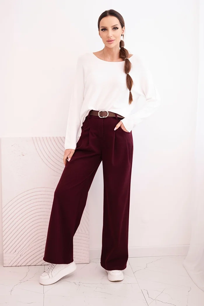 Eleganckie spodnie damskie z szeroką nogawką i paskiem to must-have w jesienno-zimowej garderobie każdej kobiety. Wykonane z wysokiej jakości materiału, zapewniają komfort noszenia oraz stylowy wygląd. Luźny krój i wysoki stan optycznie wysmuklają sylwetkę, a dołączony pasek pięknie podkreśla talię.