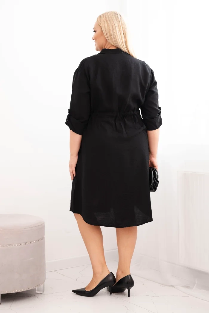 Sukienka damska z wiskozy Plus Size z guzikami i wiązaniem w talii czarna