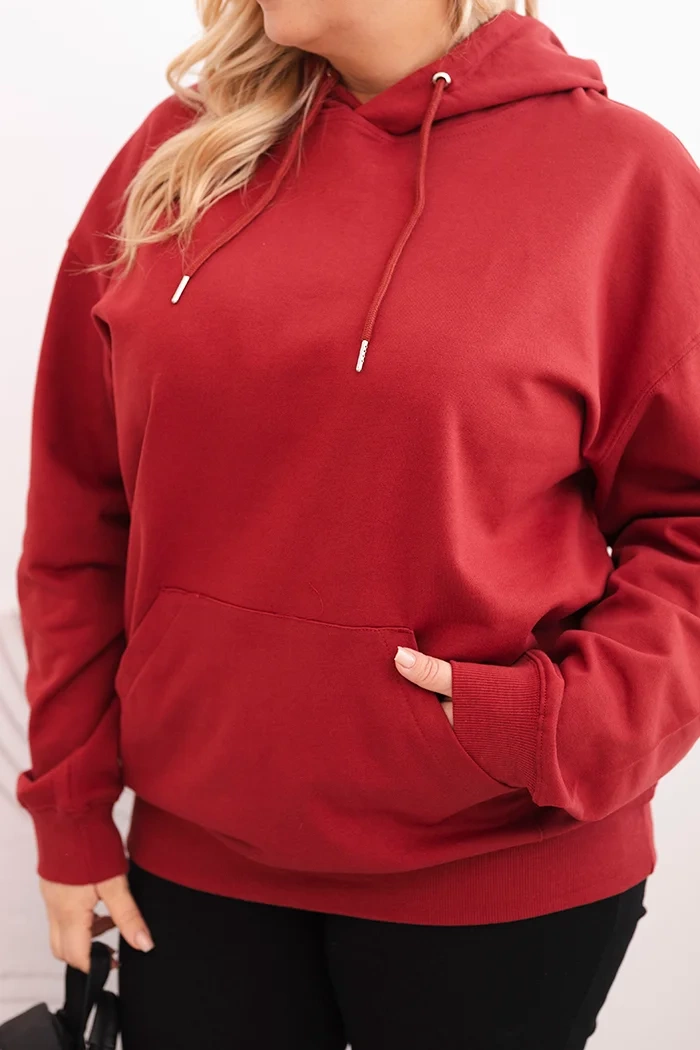 Bluza damska pętelkowa Plus Size bawełniana z kapturem i kieszenią kangurką bordowa