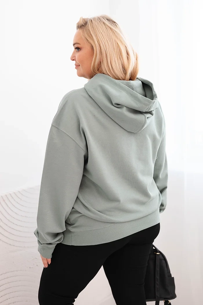 Bluza damska pętelkowa Plus Size bawełniana z kapturem i kieszenią kangurką ciemno miętowa