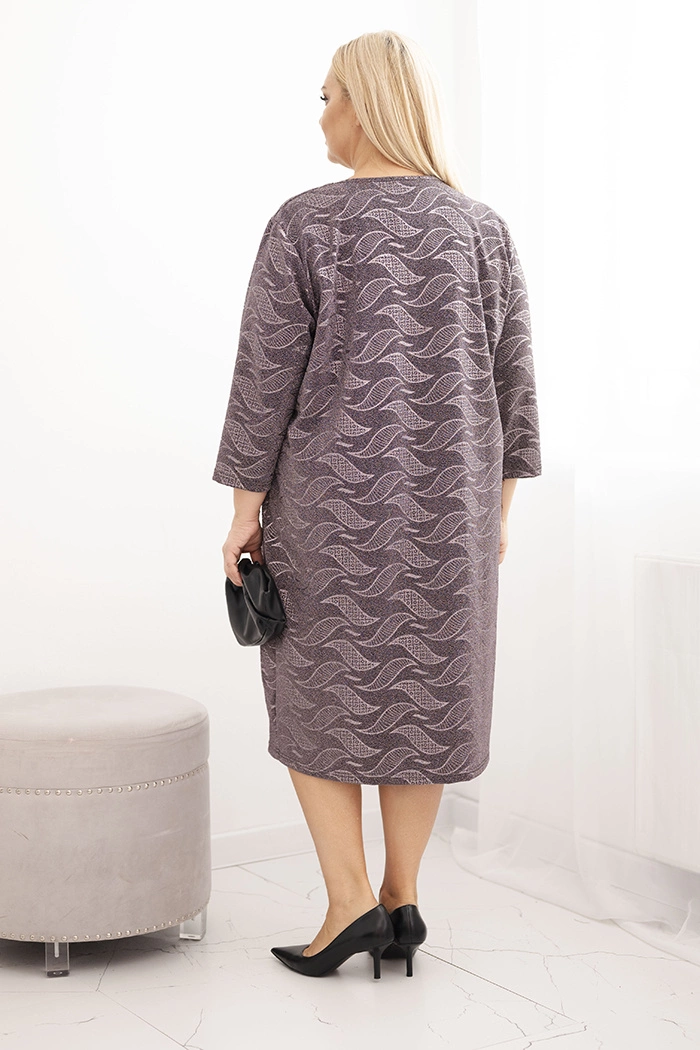 Geometryczny wzór dodaje jej charakteru, a długość za kolano podkreśla kobiecą sylwetkę, jednocześnie maskując drobne niedoskonałości. Idealna propozycja dla Pań ceniących sobie wygodę i elegancję.