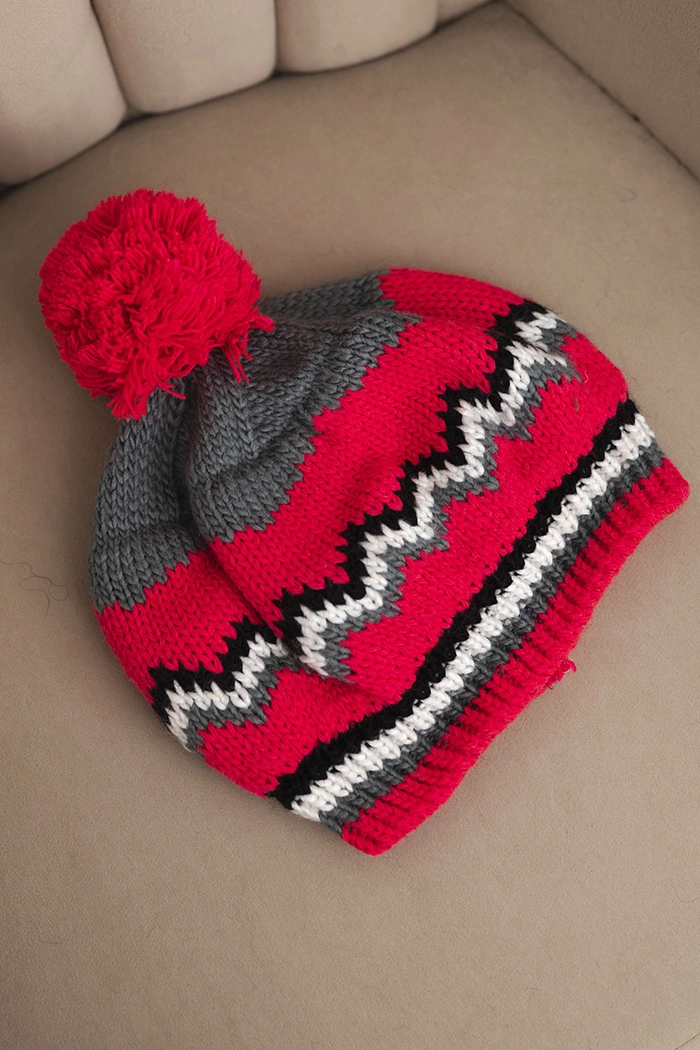 Stylowa czapka zimowa z miękkim pomponem i barwnym wzorem o geometrycznym motywie. Idealna na chłodne dni – nie tylko ogrzeje, ale i doda charakteru każdej stylizacji. Dzianinowy splot zapewnia wygodne dopasowanie do głowy.