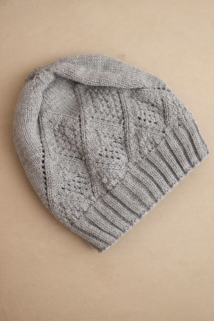 Modna i ciepła czapka damska wykonana z przyjemnej w dotyku dzianiny. Geometryczny wzór nadaje jej oryginalnego charakteru, a elastyczny materiał dopasowuje się do kształtu głowy, zapewniając komfort w chłodne dni.