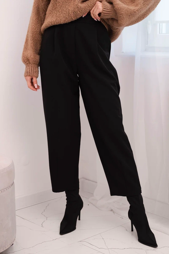 Spodnie damskie z wysokim stanem i zakładkami czarne