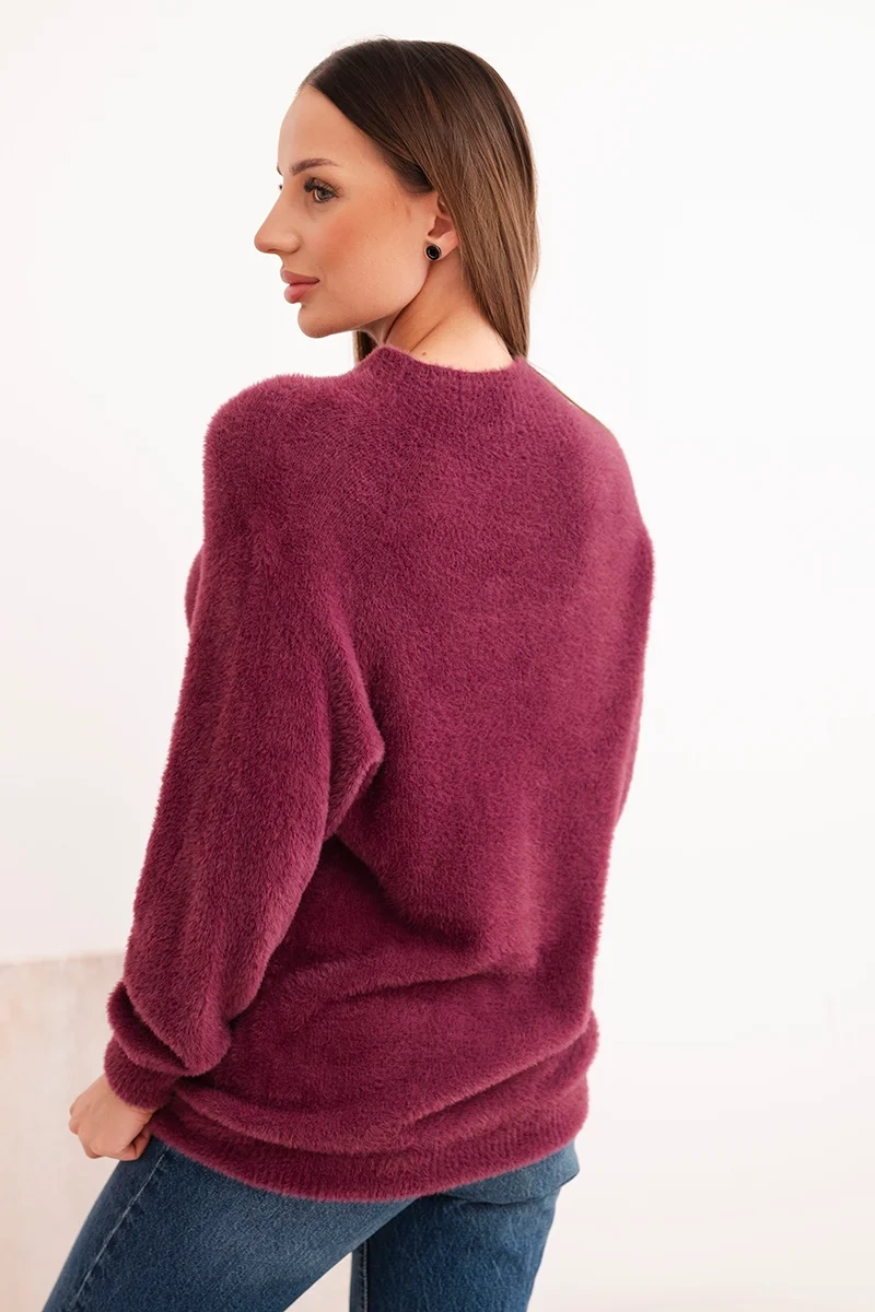 Ten sweter damski z wełną to idealna propozycja na chłodniejsze dni. Wykonany z niezwykle miękkiej, przyjemnej w dotyku dzianiny o lekkiej, „puchatej” fakturze, zapewnia komfort i ciepło przez cały dzień.