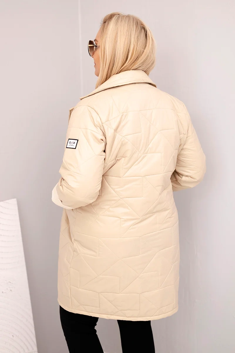 Kurtka damska Plus Size pikowana z ozdobnymi guzikami i kołnierzem ciemno beżowa