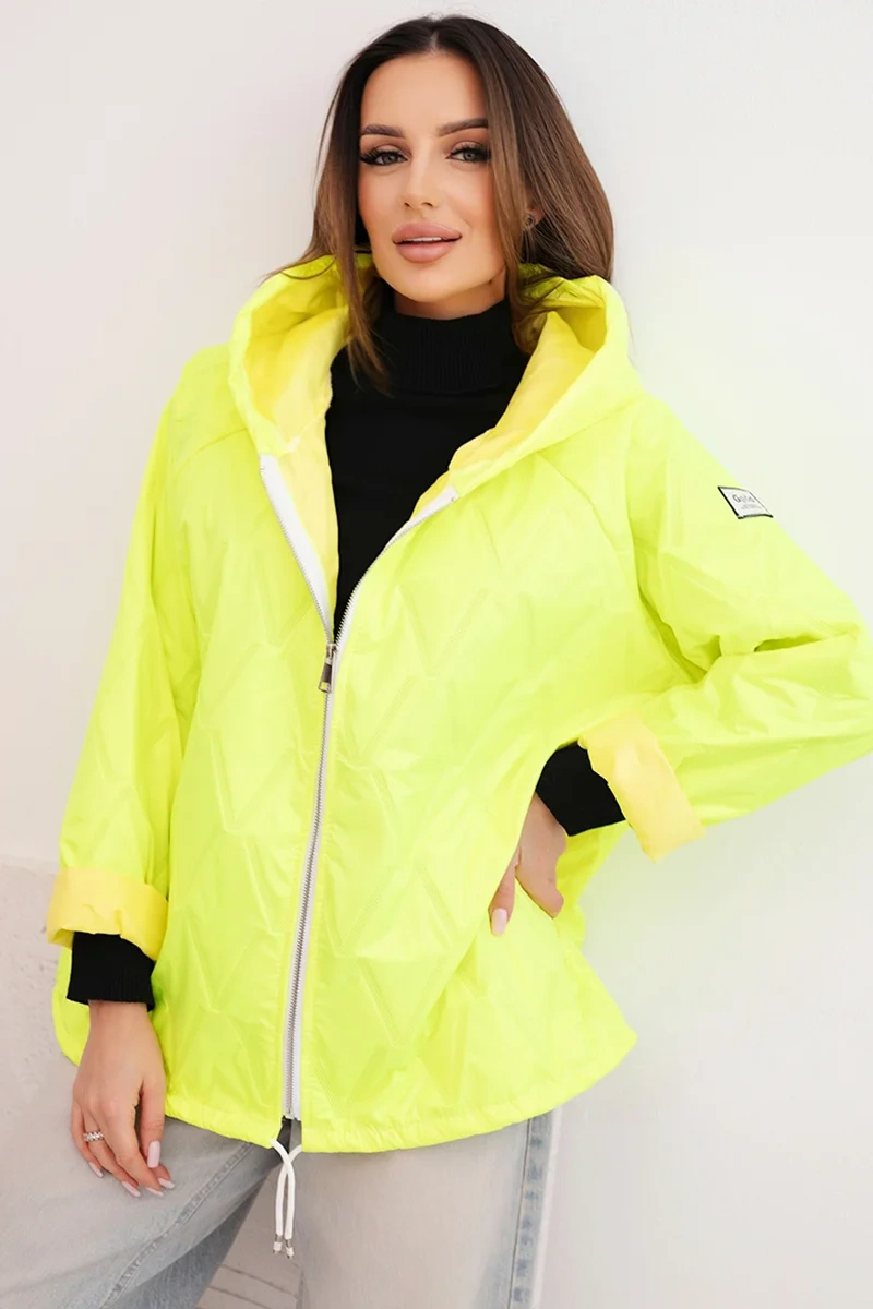 Kurtka damska wiosenna pikowana z kapturem i zamkiem żółty neon