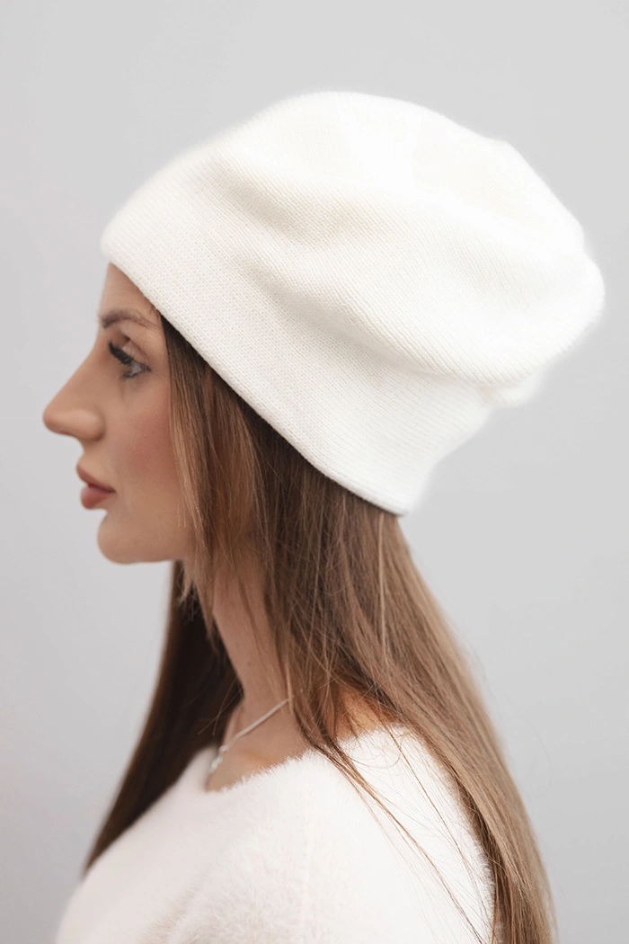 Czapka damska wełniana klasyczna gładka beanie K420 ecru