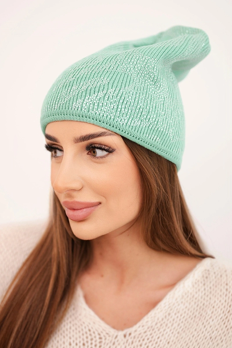 Czapka damska zimowa z moherem i połyskującym wzorem K502 miętowa
