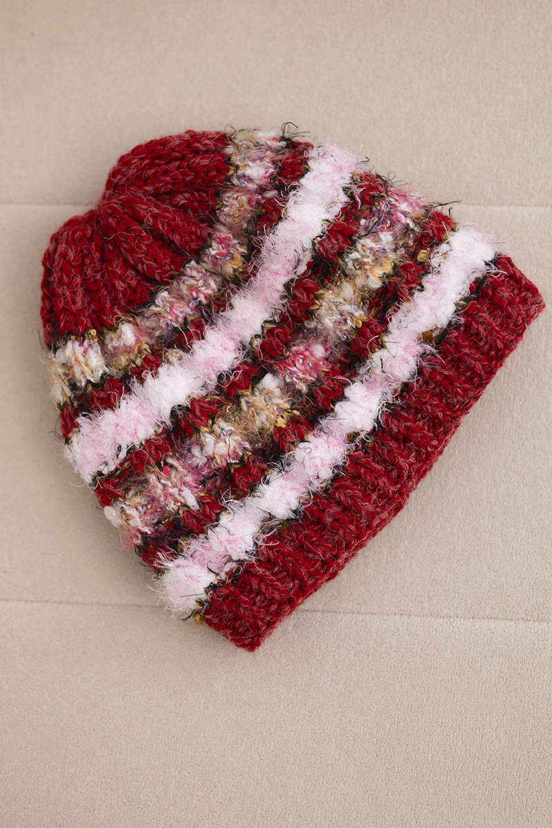 Czapka damska zimowa z kolorową przędzą i elastycznym ściągaczem K352 bordowa