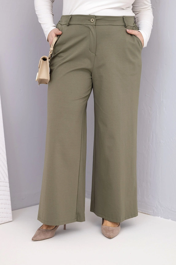 Spodnie damskie Plus Size z szeroką nogawką i wysokim stanem khaki