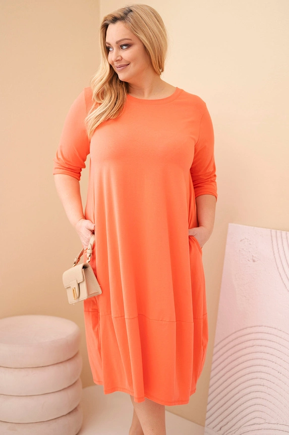 Wygodna i stylowa sukienka damska Plus Size wykonana z miękkiej, elastycznej bawełny idealnie sprawdzi się w codziennych stylizacjach. Luźny, komfortowy krój pięknie układa się na sylwetce, zapewniając swobodę ruchów, a podwijane rękawy dodają jej lekko casualowego charakteru. Model posiada prostą linię i długość midi, dzięki czemu prezentuje się elegancko i ponadczasowo.