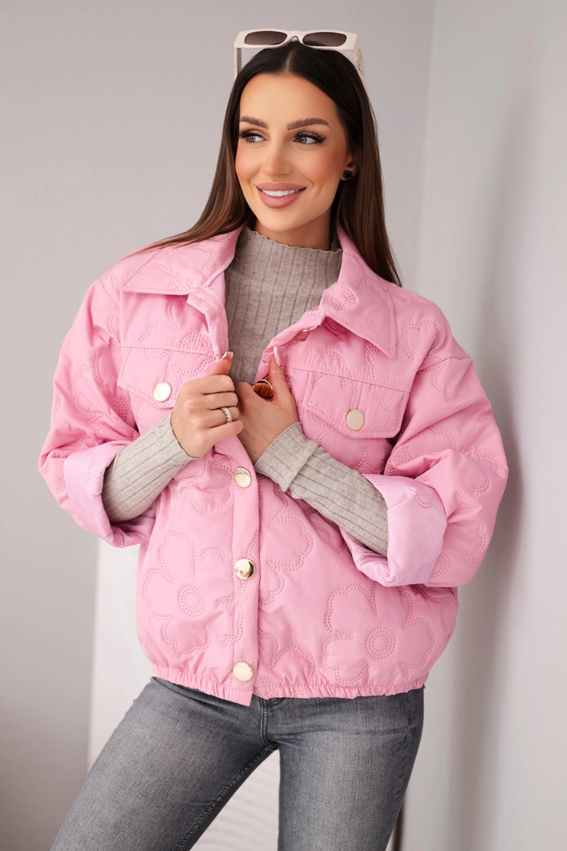 Kurtka damska wiosenna pikowana z kwiatowym wzorem jasno różowa