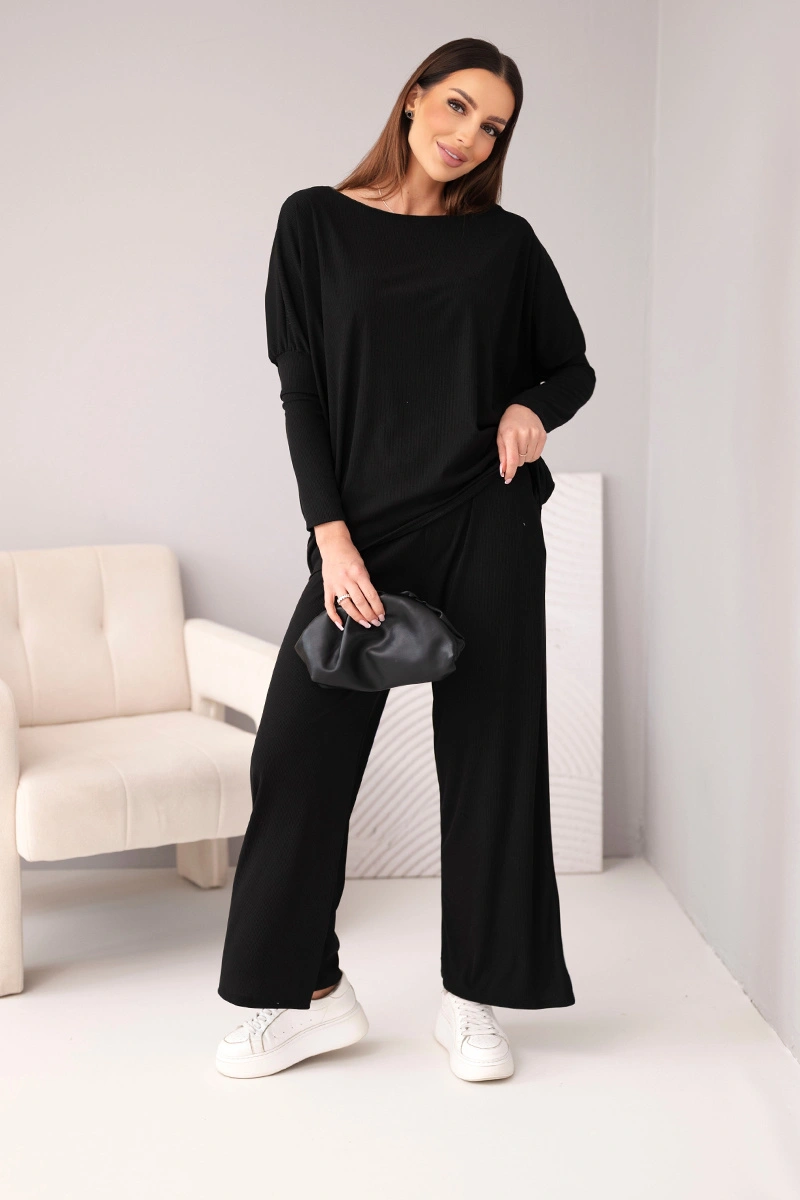 Komplet damski wiskozowy z luźną bluzką i spodniami czarny