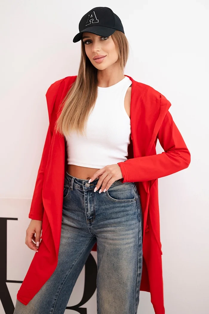 Prezentujemy Państwu długą narzutkę z kapturem i dużymi kieszeniami. Narzutka wykonana jest z wysokiej jakości materiału. Rozmiar jest uniwersalny i będzie odpowiedni dla Pań w rozmiarze S, M i L