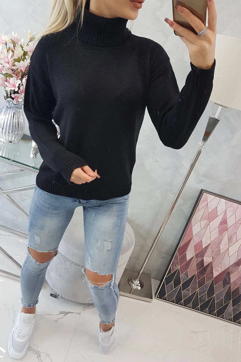 Pulóver rolák sveter čierna