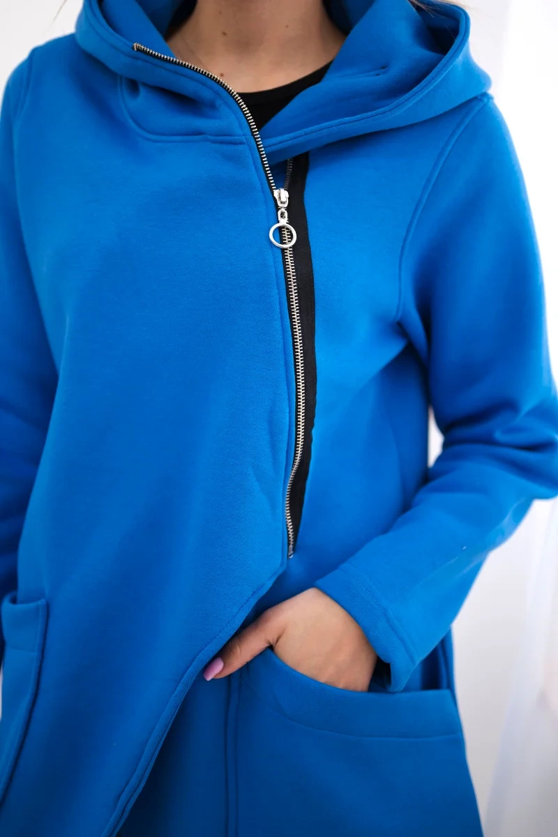 Prezentujemy Państwu ciepłą bluzę. Bluza posiada kaptur oraz asymetryczny suwak. Na przodzie znajdują się dwie naszyte kieszenie. Dodatkowo przód bluzy jest dłuższy. Bluza wykonana jest z ocieplanego materiału. Rozmiar jest uniwersalny i będzie odpowiedni dla Pań noszących rozmiar S, M lub L.