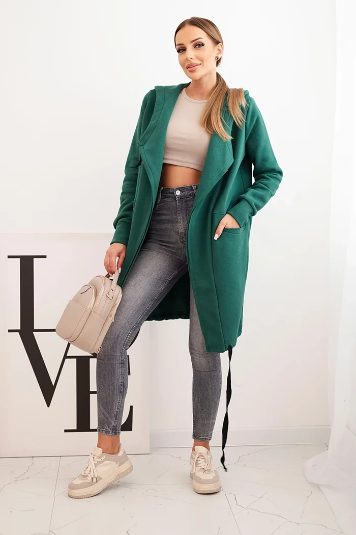 Prezentujemy Państwu długą narzutkę z kapturem i kieszeniami. Narzutka wykonana jest z wysokiej jakości ocieplanego materiału. Rozmiar jest uniwersalny i będzie odpowiedni dla Pań w rozmiarze S, M i L