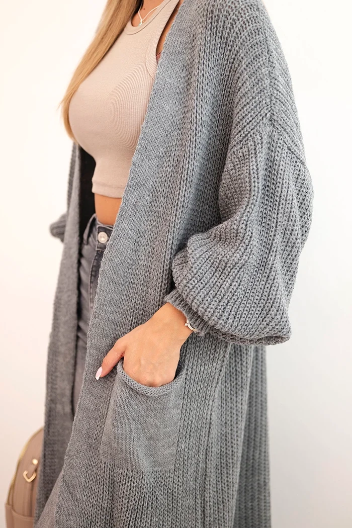 Dlhý taliansky sveter cardigan je esenciou pohodlia a štýlu. Tento sveter vyrobený z mäkkých a na dotyk príjemných vlákien je dokonalým spoločníkom na chladnejšie dni. Jeho predĺžený strih mu dodáva eleganciu pri zachovaní ležérneho charakteru. Sveter z Talianska je spojením vynikajúceho remeselného spracovania a talianskeho vkusu. Jeho sofistikované povrchové úpravy mu dodávajú jedinečné čaro. Sveter je vďaka svojej dĺžke vhodný ako na nosenie na doma, tak aj ako prvok každodenného stylingu. Jeho všestrannosť znamená, že ho možno nosiť ako ľahký kabát v teplejších dňoch, tak aj ako ochrannú vrstvu proti chladu pod hrubší kabát. Dlhý sveter nie je len odevom, ale aj výrazom talianskej elegancie a dôrazu na pohodlie, ktorý určite zvýrazní individuálny štýl každého, kto si ho oblečie. Veľkosť je univerzálna a bude vhodná pre ženy vo veľkostiach M, L, XL.