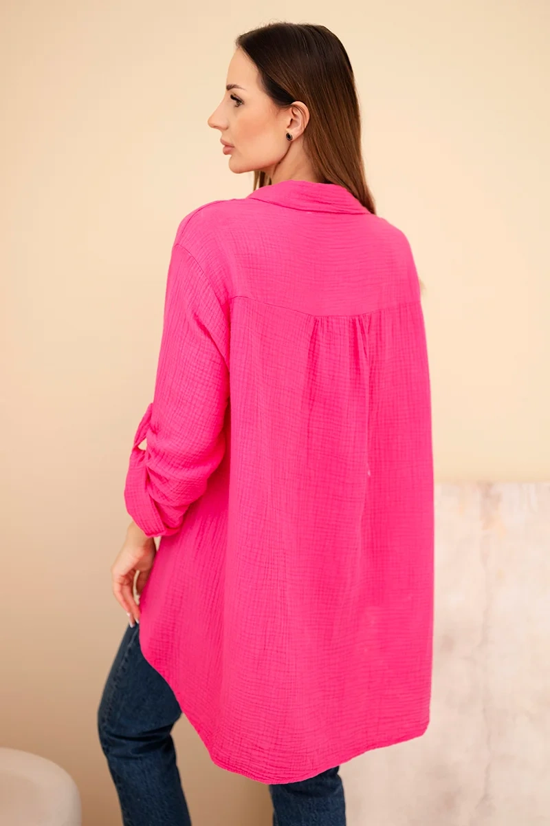 Mušelínová košeľa je stelesnením pohodlia a nadčasovej elegancie. Vyrobená z ľahkého, priedušného mušelínu, je ideálna na každé ročné obdobie, poskytuje pohodlie pri nosení a voľnosť pohybu. Jej univerzálny strih ju robí vhodnou ako na každodenné, tak na formálne outfity. Jemná štruktúra materiálu dodáva jemný šarm a precízne spracovanie zdôrazňuje vysokú kvalitu prevedenia. Mušelínová košeľa je povinnou súčasťou šatníka pre tých, ktorí oceňujú kombináciu klasiky a moderného štýlu. Veľkosť je univerzálna a je vhodná pre ženy nosiace veľkosti S, M alebo L.