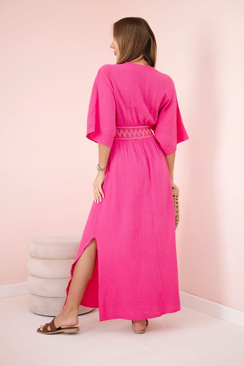 Mušelínové šaty s výšivkou v páse fuchsia