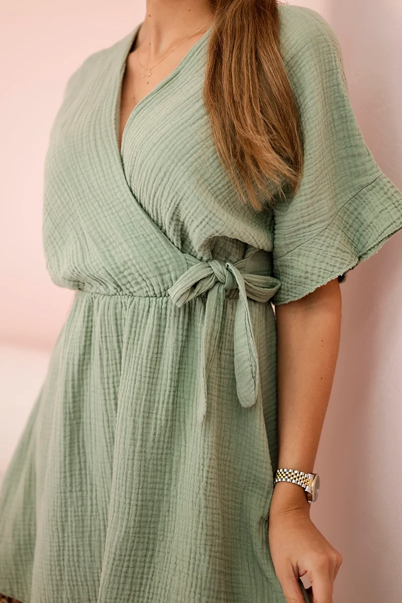 Mušelínové šaty s pásom svetlá khaki