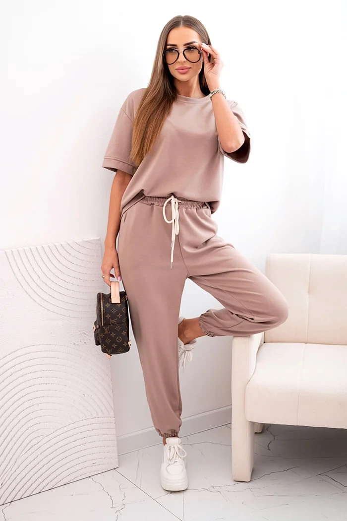 Dámska viskózová súprava s krátkym rukávom a nohavicami ťava